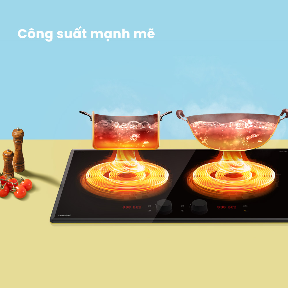 Bếp từ 2 bếp thông minh COMFEE CIH-55DSU sở hữu tổng công suất lên đến 5500W, với 15 mức cài đặt nhiệt độ + chế độ gia nhiệt nhanh Booster công suất lên đến 3300W + 3300W, không chỉ tiết kiệm thời gian mà còn mang đến sự tiện lợi tối đa trong quá trình nấu nướng, giúp bạn chuẩn bị bữa ăn nhanh chóng mà vẫn giữ nguyên hương vị và chất lượng của từng món ăn.