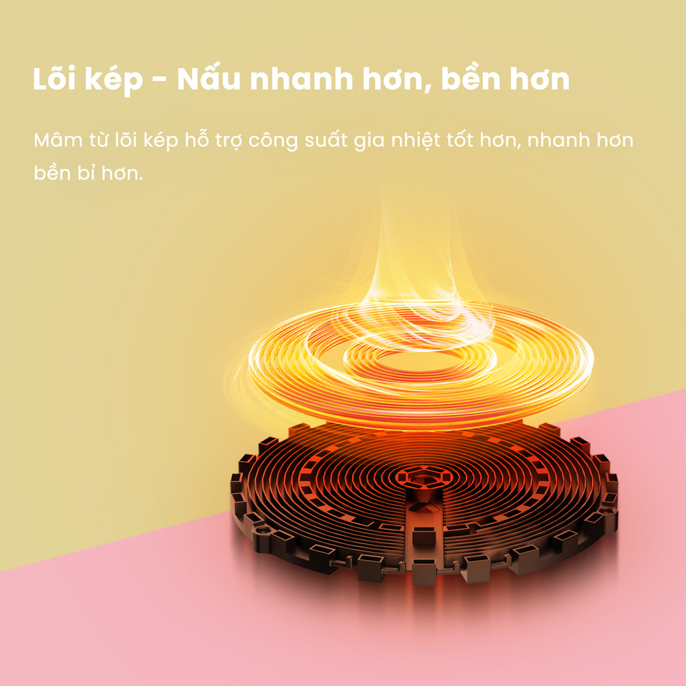 Mâm từ lõi kép cao cấp, mang lại hiệu suất gia nhiệt vượt trội. Với khả năng tăng tốc độ gia nhiệt nhanh hơn, mâm từ lõi kép giúp bạn tiết kiệm thời gian nấu nướng mà vẫn đảm bảo món ăn chín đều, giữ trọn hương vị. Không chỉ cải thiện tốc độ, mâm từ lõi kép còn nổi bật với độ bền cao, giúp bếp duy trì hiệu suất ổn định trong thời gian dài sử dụng.