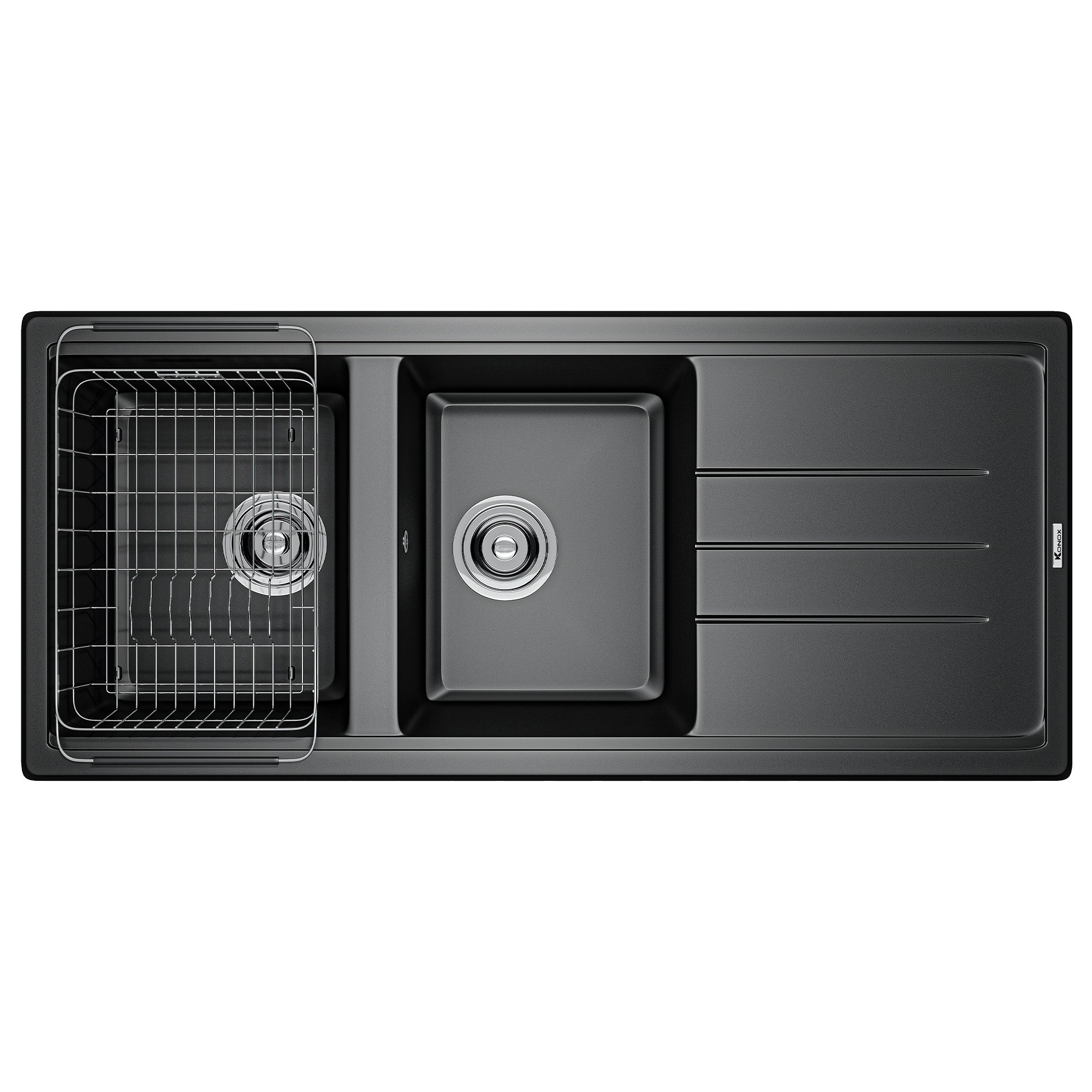 Chậu đá Phoenix 1160 được thiết kế một bàn chờ gắn liền giúp bạn có thêm không gian sắp xếp đồ bếp và rãnh thoát nước thông minh giữ cho mặt bàn bếp luôn khô thoáng tiện lợi.