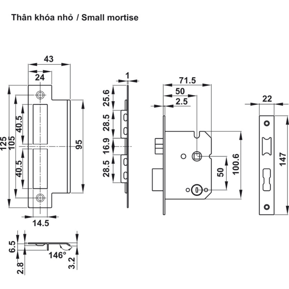 -Thân khóa nhỏ: 35 – 60 mm