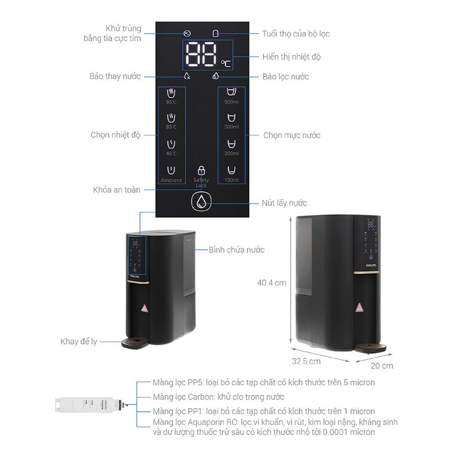 Máy lọc nước RO Philips ADD6901HBK01- Màu đen