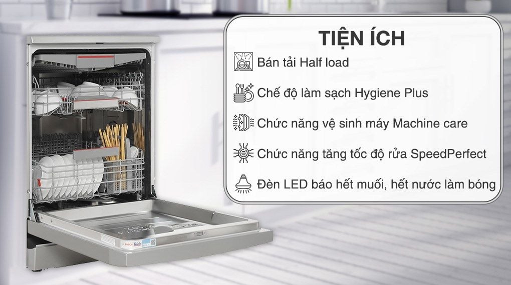 – Machine Care: Chương trình Machine Care sẽ chạy một chu trình rửa và vệ sinh toàn bộ máy, bao gồm cả phần lưới lọc và bộ lọc nước. Ngoài ra, chương trình cũng sẽ loại bỏ mọi cặn bẩn, vi khuẩn trong máy rửa bát, giúp tăng tuổi thọ của máy đồng thời tiết kiệm thời gian khi vệ sinh máy thủ công.