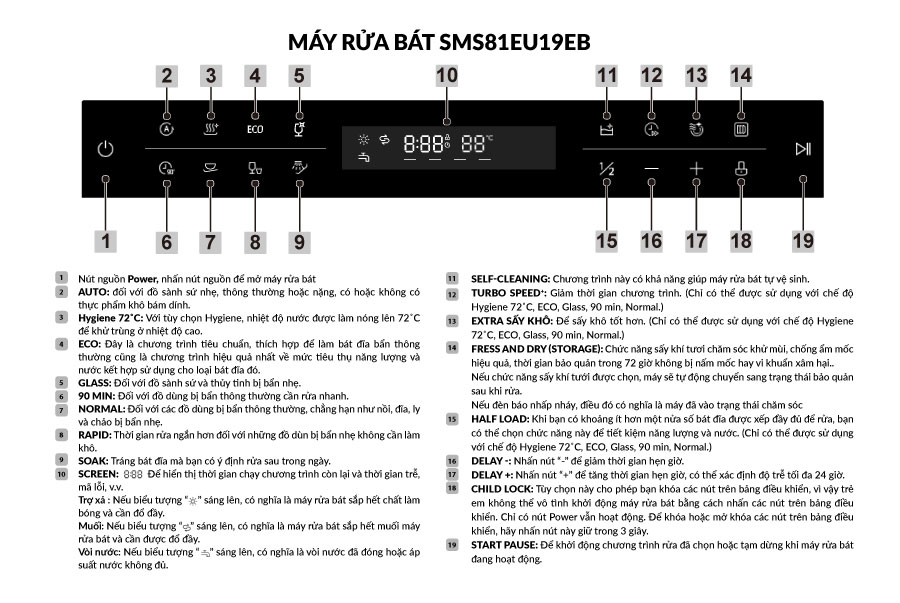 | Tên sản phẩm | Máy rửa bát SMS81EU19EB |