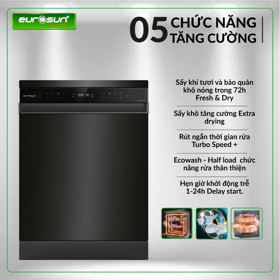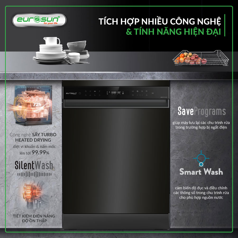 Máy rửa bát Eurosun 15 bộ SMS81EU19EB nhập khẩu Thái Lan