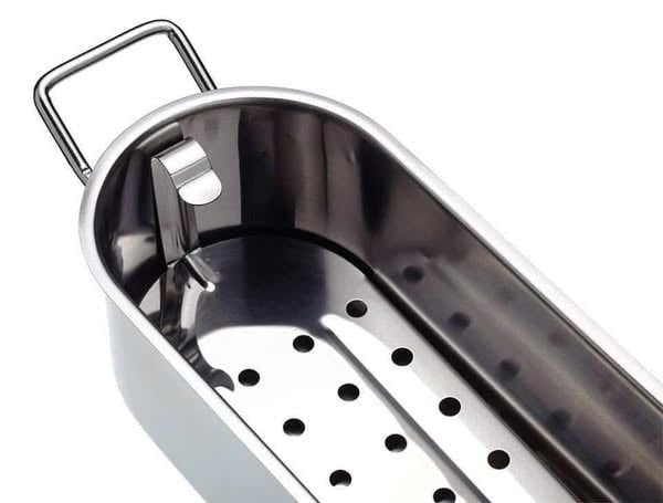 Nồi hấp cá KitchenCraft 45cm là lựa chọn lý tưởng cho các gia đình yêu thích món cá hấp nguyên con hoặc hấp nhiều loại hải sản cùng lúc. Được sản xuất từ thép không gỉ sáng bóng, nồi mang lại vẻ sang trọng và độ bền vượt trội, phù hợp với mọi loại bếp, kể cả bếp từ.