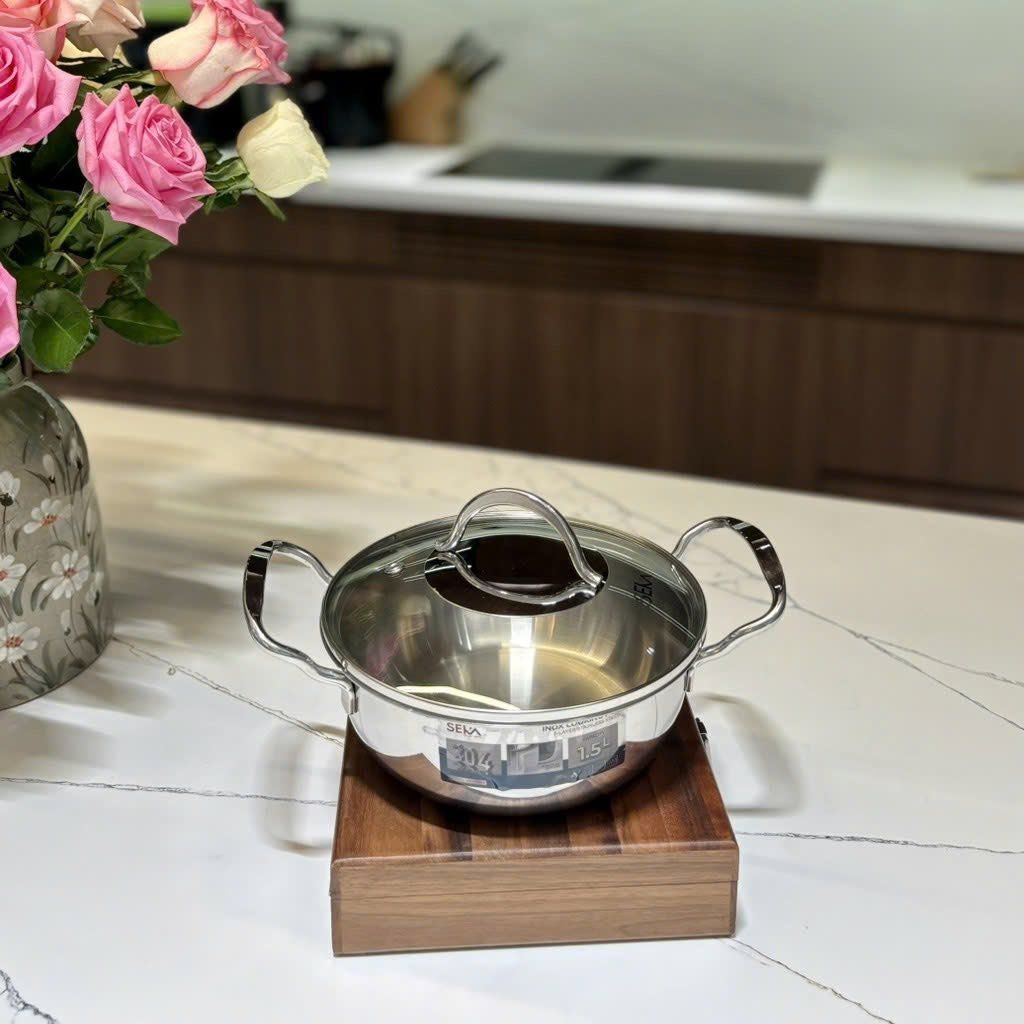 Chất liệu inox nguyên khối cao cấp, dẫn nhiệt nhanh, giữ nhiệt lâu, bền đẹp theo thời gian.