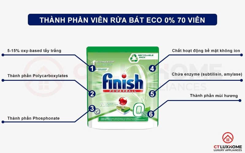 Thành phần cơ bản của Viên rửa bát Finish All in 1 Max Eco 0%:
