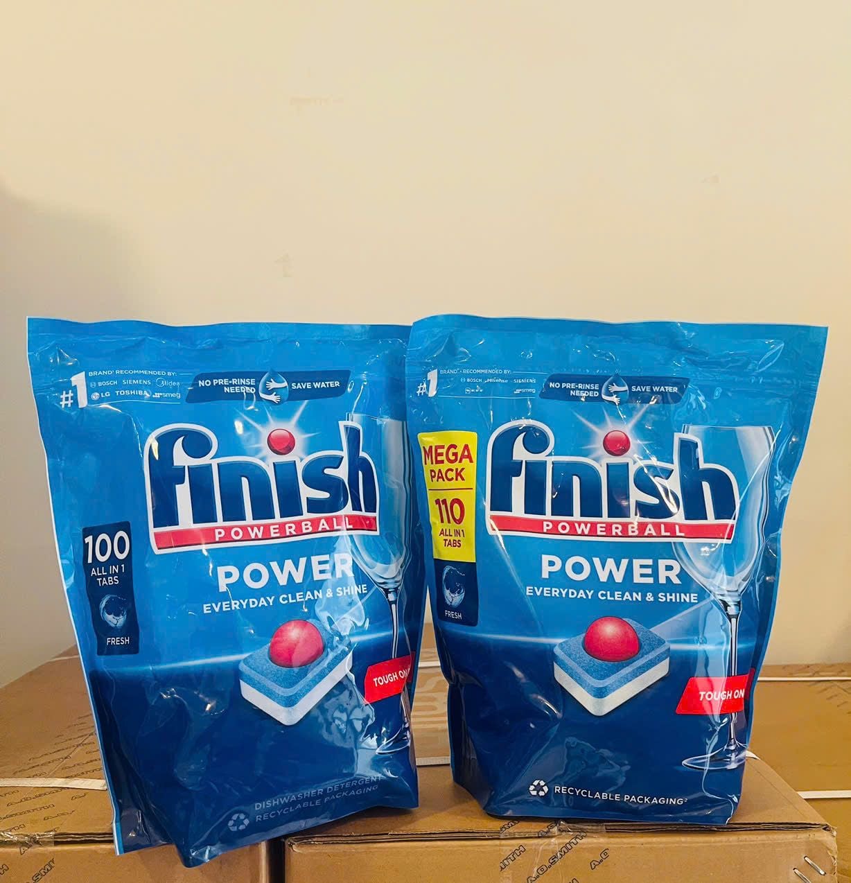- Công thức Powerball nổi tiếng của Finish làm sáng bóng vật dụng và đồng thời giúp bảo vệ đồ thuỷ tinh, đồ ăn đắt tiền.