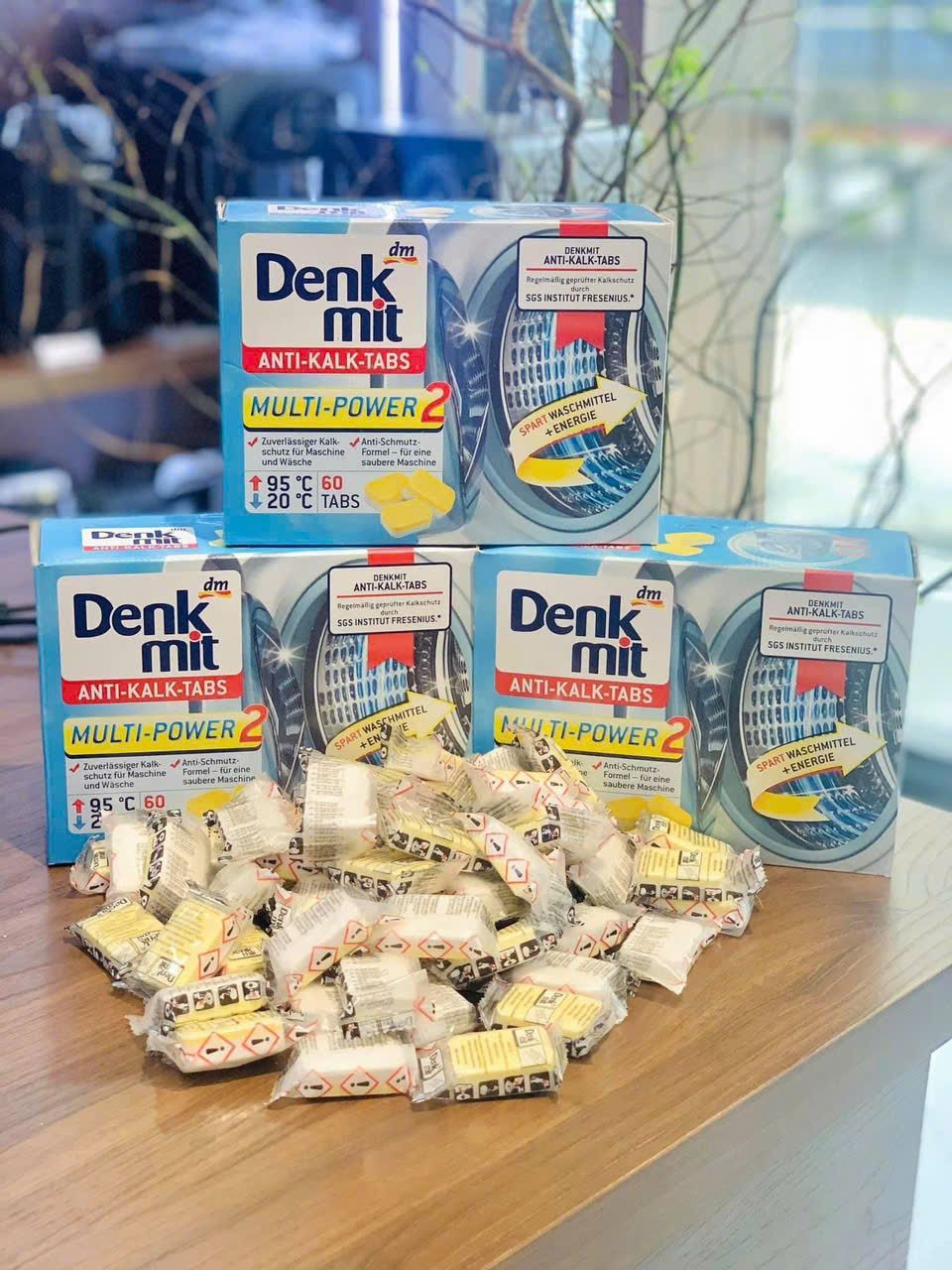 - Viên vệ sinh máy giặt Denkmit giúp làm sạch và chống lại cặn bẩn có hại trong máy và đồ giặt.