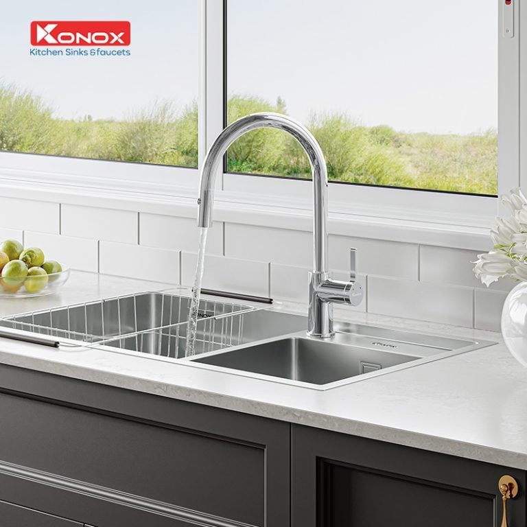 – Chức năng: Nóng lạnh + Rút dây + Đầu vòi khớp xoay + 2 chức năng Sprayer (Dòng chảy phun mưa, tạo bọt khí) + Xoay 360 độ
