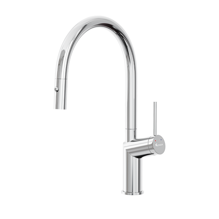 – Chức năng: Nóng lạnh + Rút dây + Đầu vòi khớp xoay + 2 chức năng Sprayer (Dòng chảy phun mưa, tạo bọt khí) + Xoay 360 độ